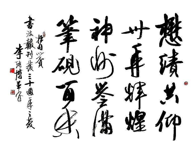 李纯博书法颇具中国古代大家之风,格调高逸、韵味深长、刚柔相济、如诗如画,可谓“清水出芙蓉,天然去雕饰”,这自然得益于他自小苦练描摹获得的深厚功力,更兼其字里行间显露出洒脱雅美、舒展大方的独特风格。可谓:挥意洒落兴何豪,墨画银钩笔力高,尽得中书真妙要,情酣洒墨意神超。