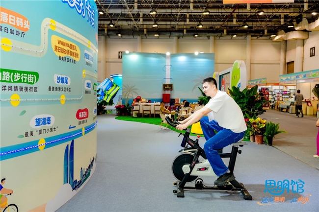 漫步至滨海体验区,环岛路的迷人风光被巧妙“搬”进展厅。观众可通过动感骑行装置,一路解锁思明最美打卡点,亲身感受思明人日常的休闲方式。这种将自然风光与城市生活完美融合的特色,正是思明生活美学的生动体现。